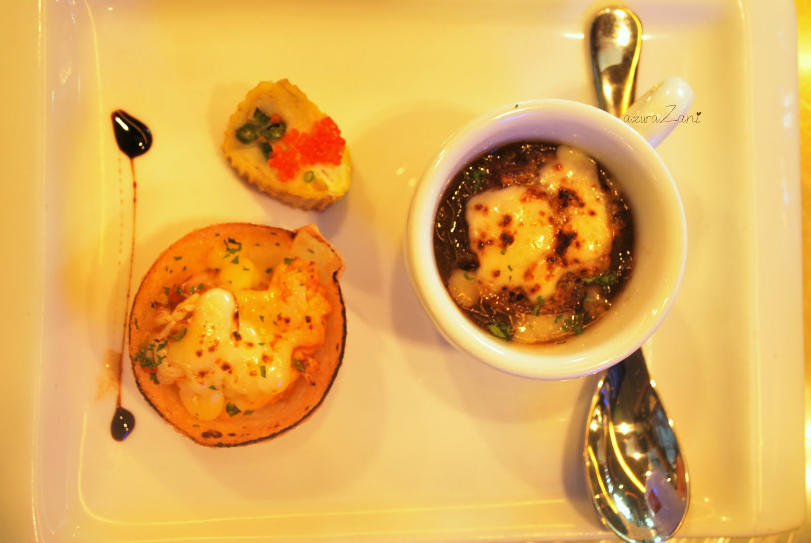 | rucola bresaola , Mushrooms tart and form , Lime scallop with tamago and rohe ?? |