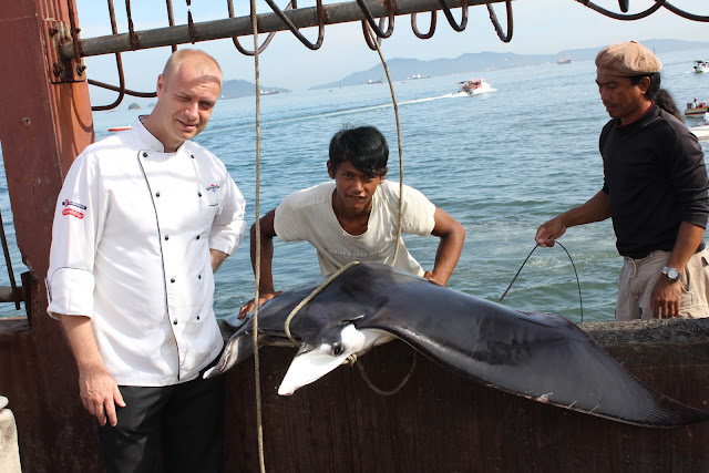 It was a two day fun trip with my colleague chefs , at one of the most impressive market, in Asia, the seafood market and the wet market of Kota Kinabalu : with Chef Jochen Kern And chef Nikolay .Do not expect less than tons and tons of fresh products , hundred of tips of fish and thousand of tips of products ,,,, all fresh .